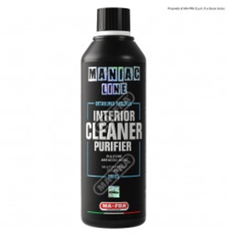 Interior Cleaner Purifier della Maniac Line di Mafra è un pulitore per l’abitacolo dell’auto sicuro ed efficace, che permette una triplice azione sulla superficie trattata. Una volta applicato, il prodotto, svolgerà un’azione decontaminante, igienizzante e anti-odore. Non stressa le fibre ma le ammorbidisce, ravviva i colori e non disidrata la pelle, lascia un finitura omogenea senza aloni su materiali plastici. Ideale per auto moderne dove vi è presenza di abbinamento di diversi materiali come pelle microfibra, allumino e carbonio.